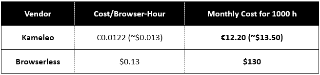 – Subscription cost per browser-hour: €59 / 7 200 ≈ €0.0082 (~$0.009)