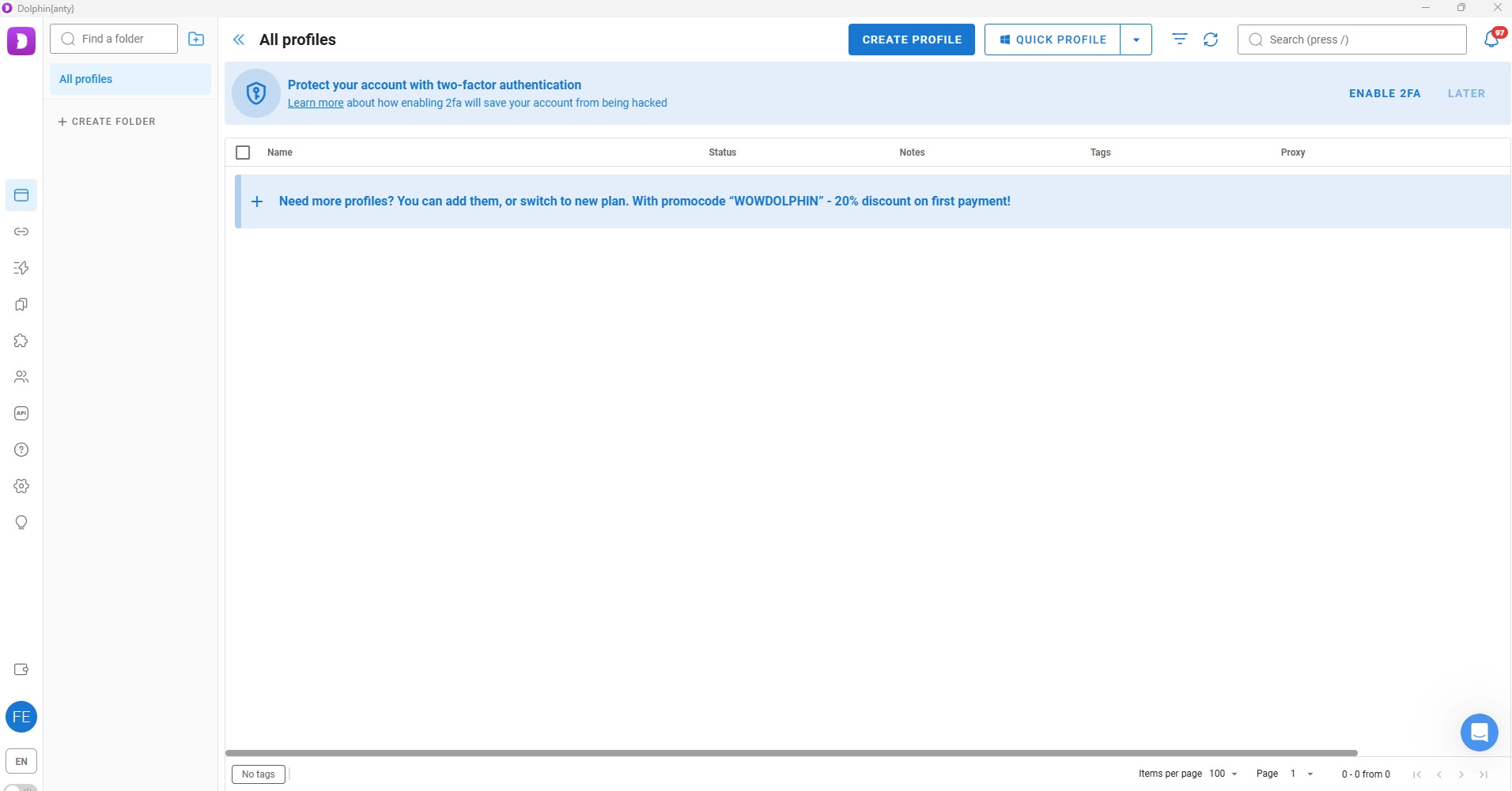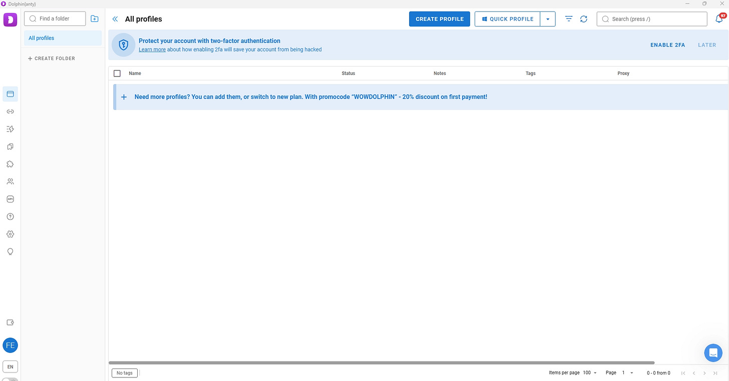 Below is how Dolphin{anty}’s interface appears after you installed it on your machine: