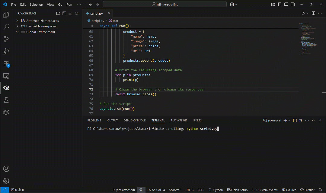 asyncio.run(run())Now, let’s see how to handle infinite scrolling in a real-world scraping scenario using Playwright with Python!