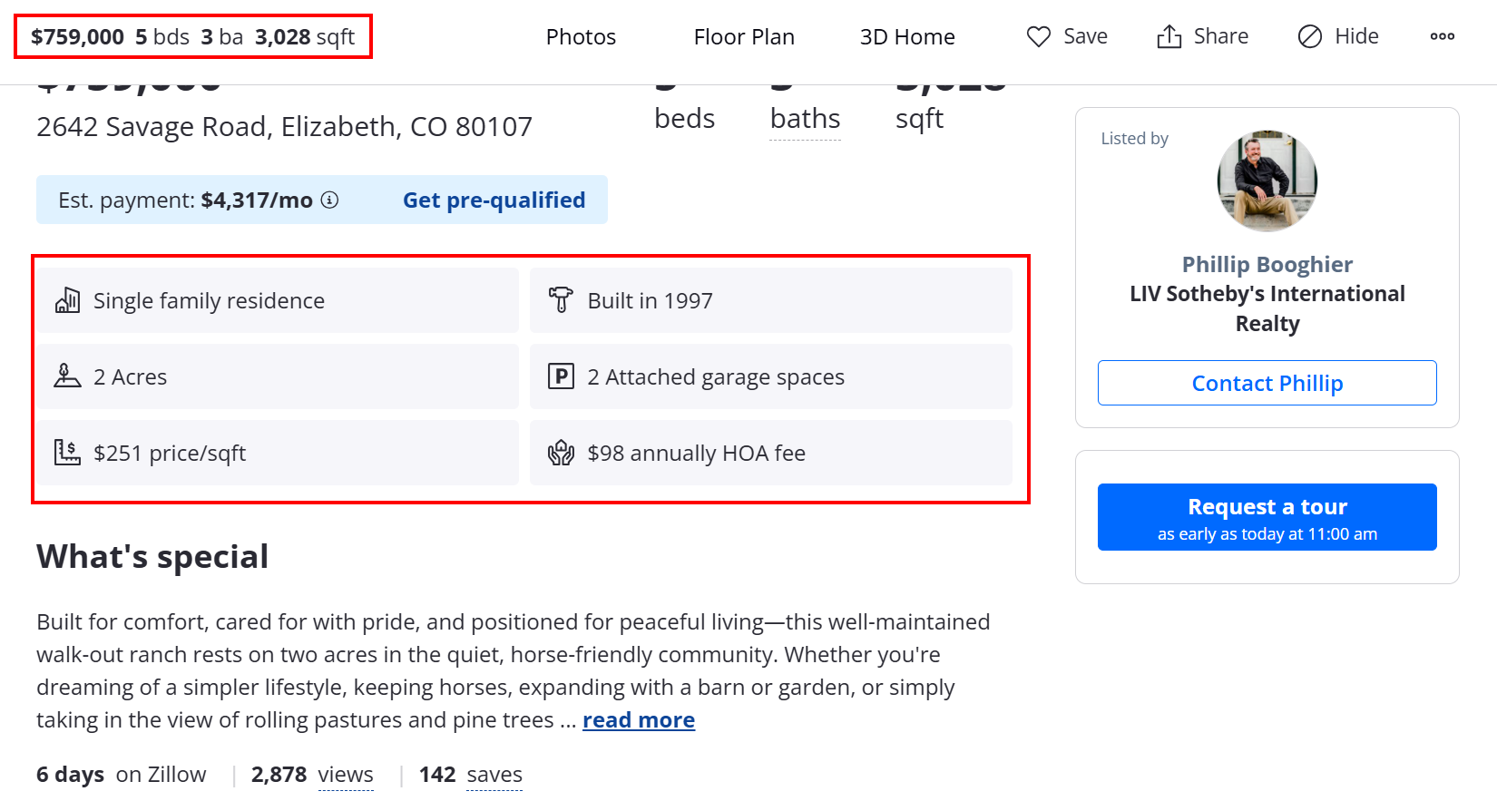 Let’s consider a specific example. Say you want to scrape data from the following Zillow page: