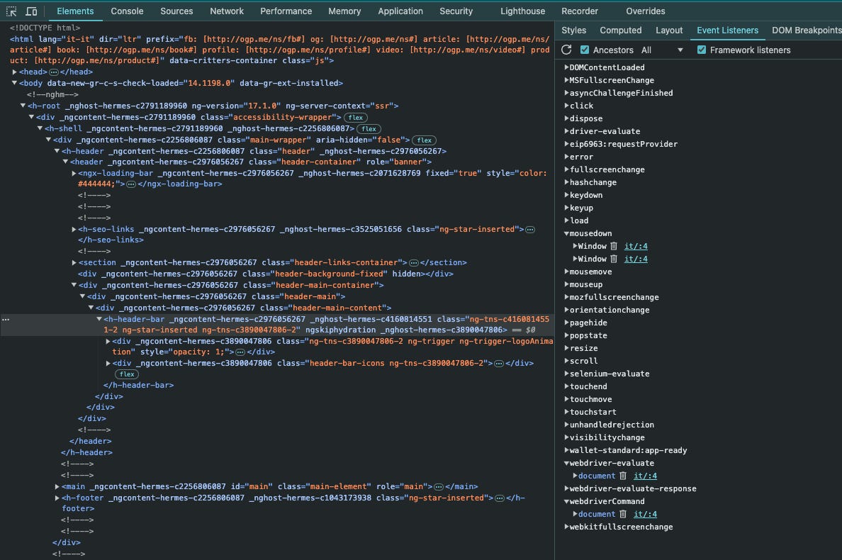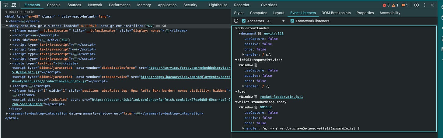 But how we can understand the listeners in place on a website? In this case, the Developer’s Tools on our browser give us some hints.