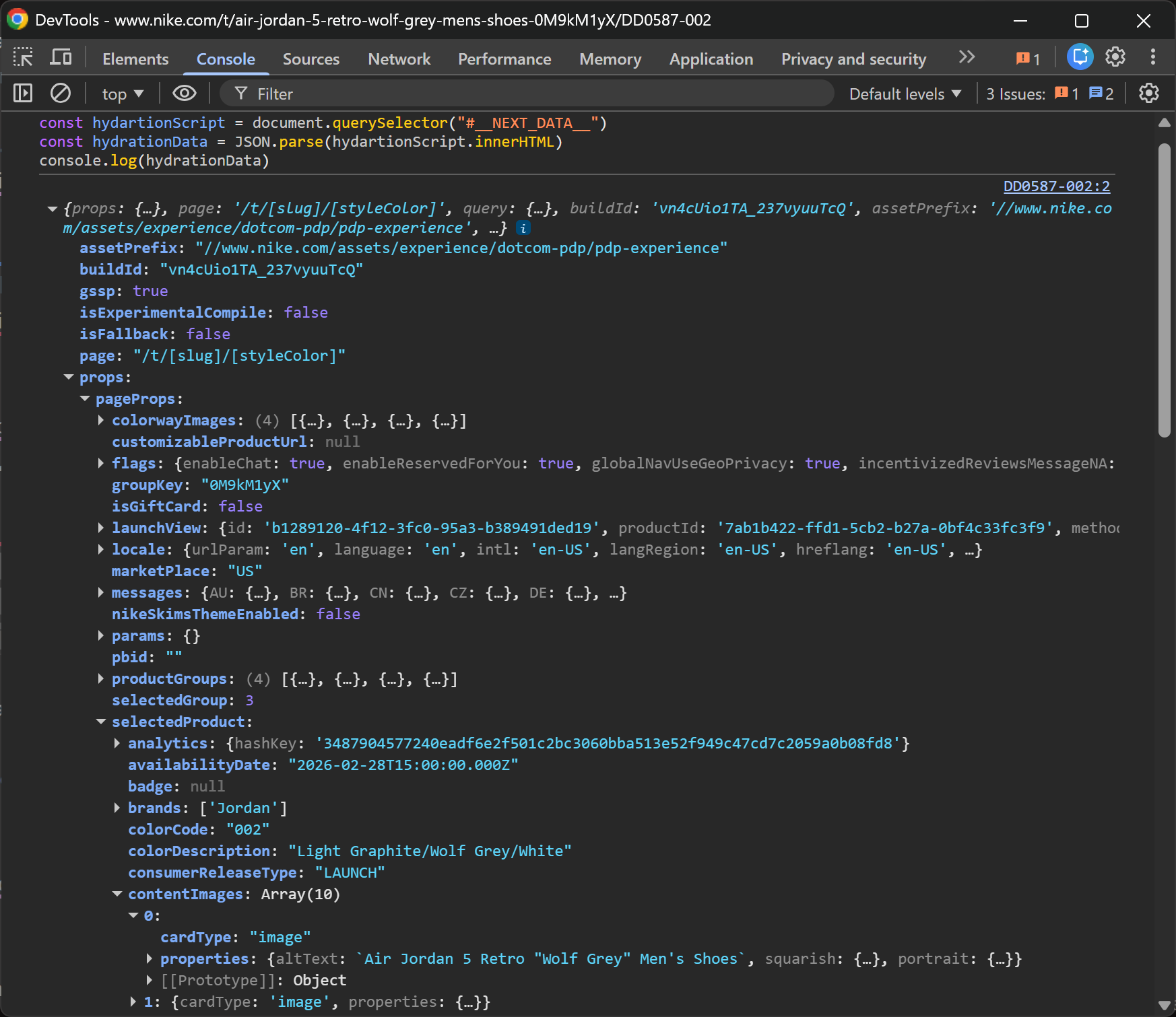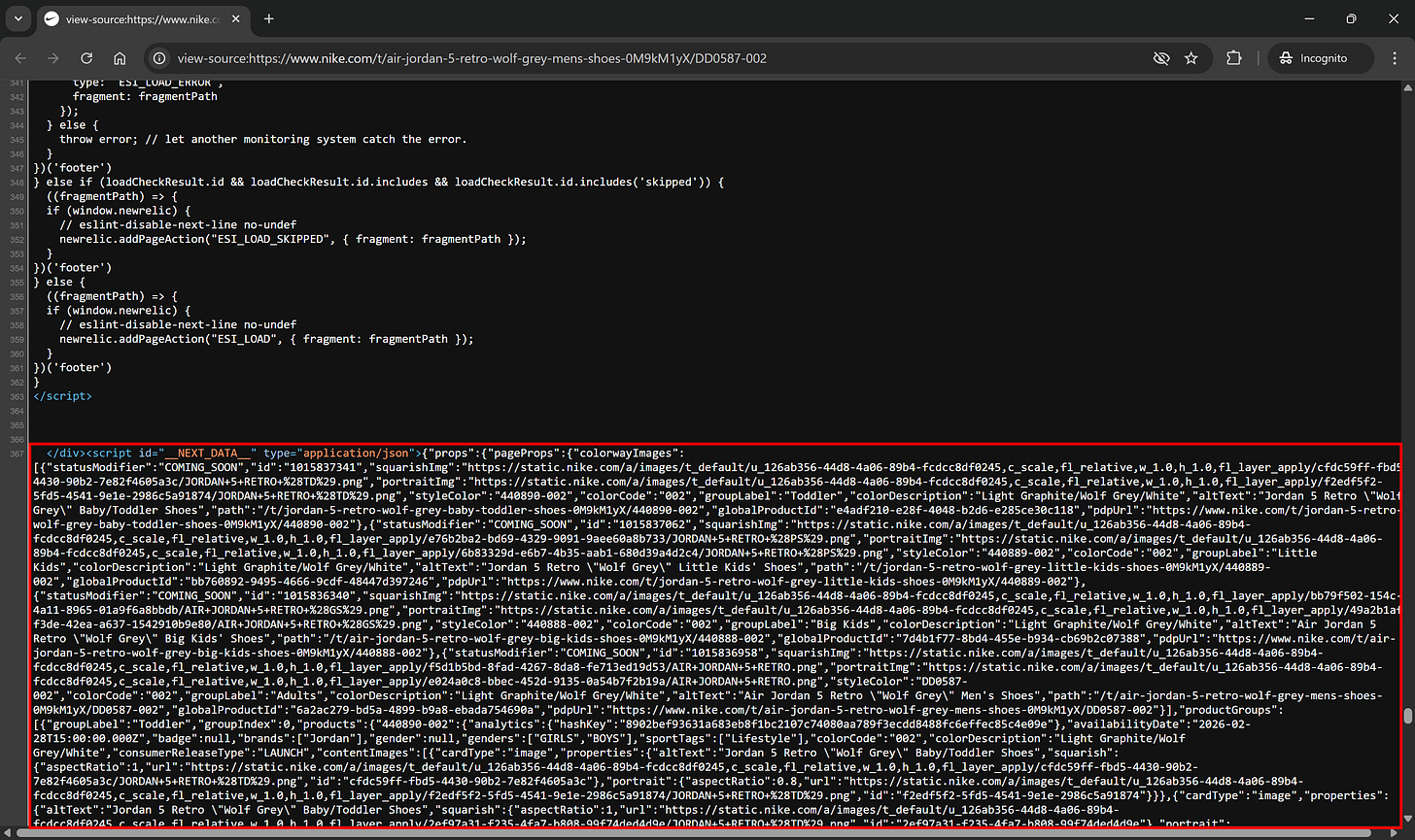 In many cases, hydration data is cleaner and easier to parse than the rendered HTML. It can also contain more information than what’s visibly displayed on the page, including hidden and interesting metadata.