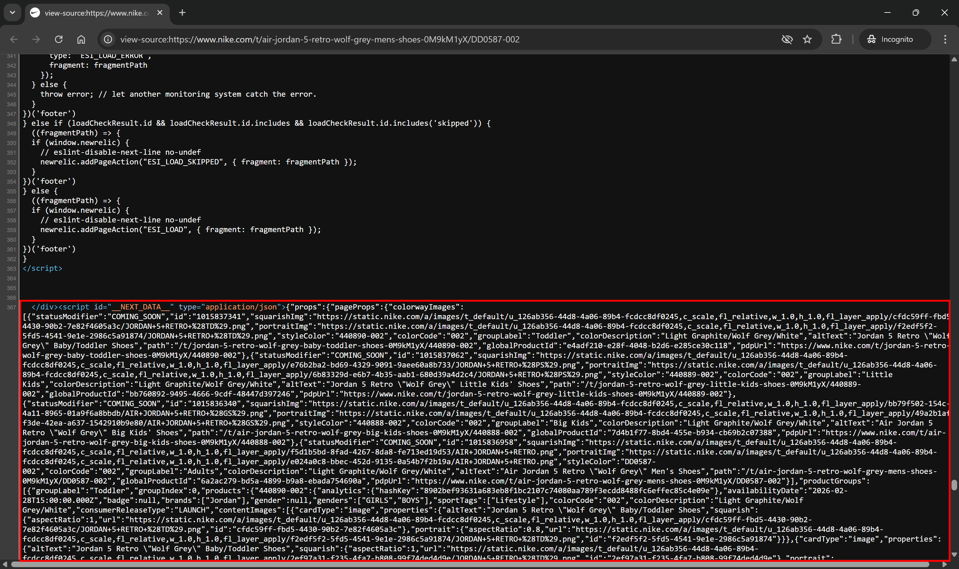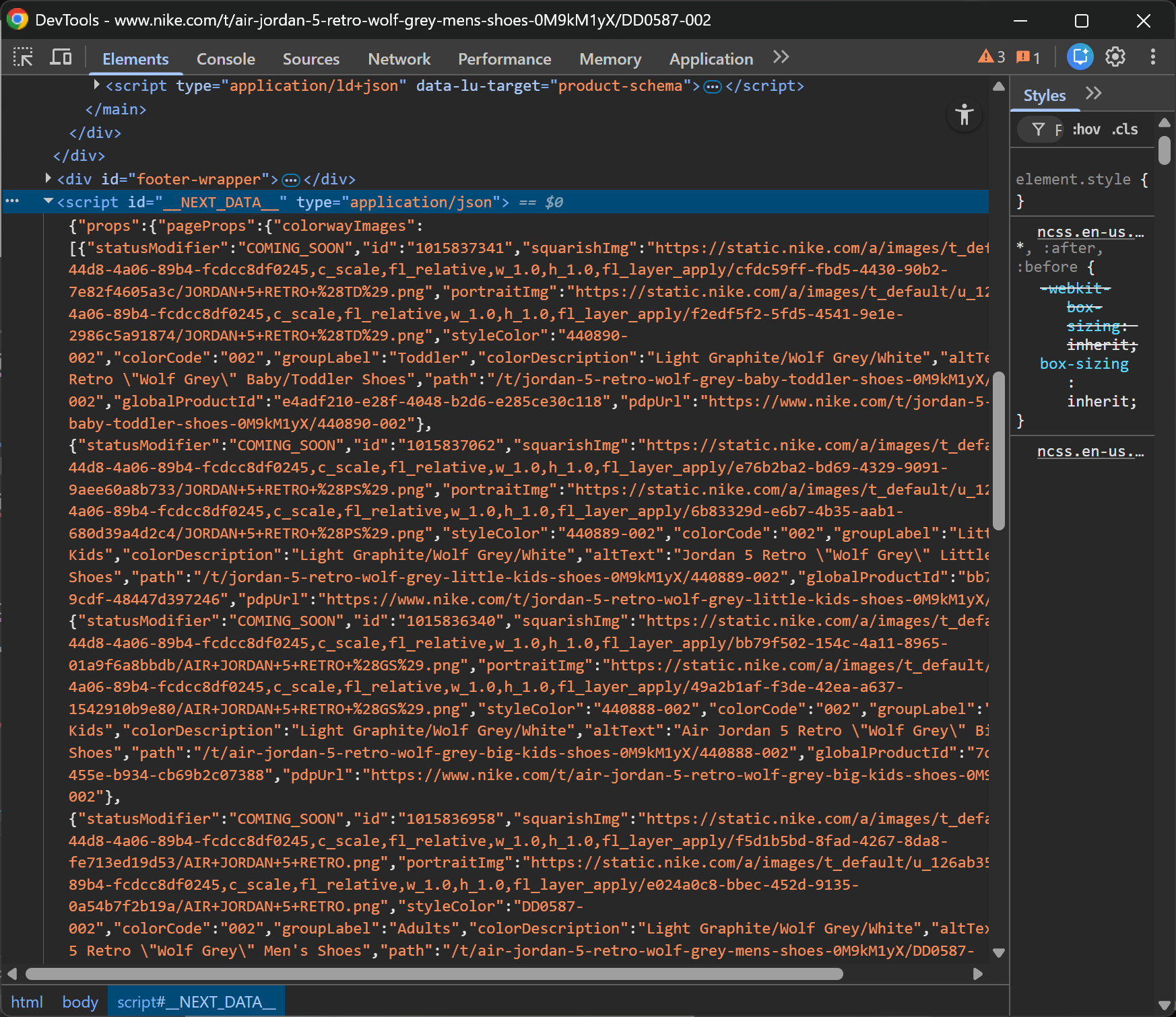 As a target site, I’ll use a Nike product page as a reference: