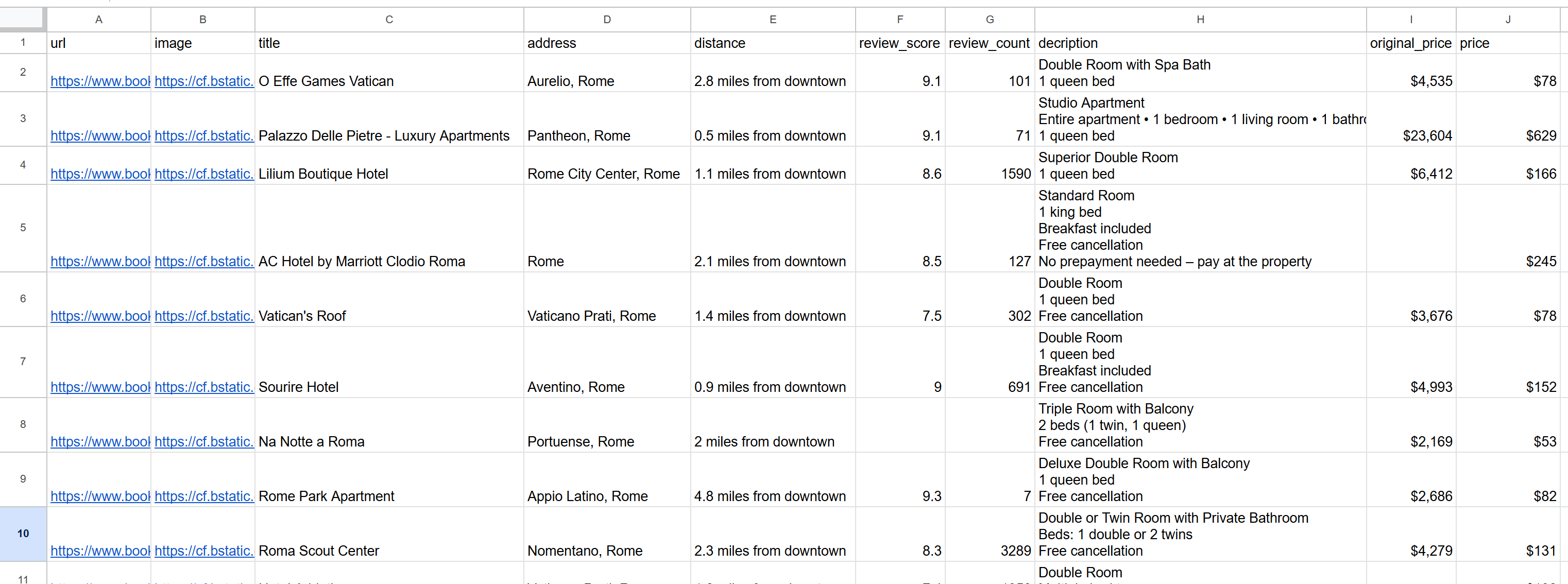In detail, you’ll learn how to automatically extract property listing data for Rome from the following Booking.com page:
