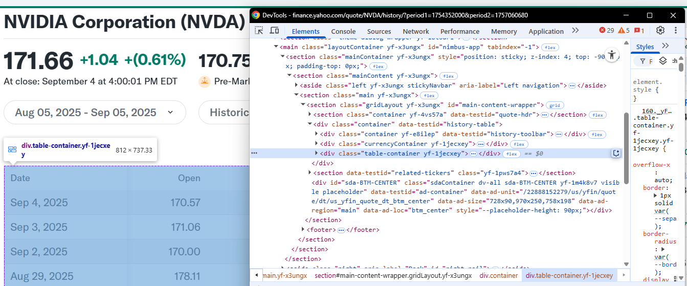 url = "<https://finance.yahoo.com/quote/NVDA/history/?period1=1754352000&period2=1757060680>"