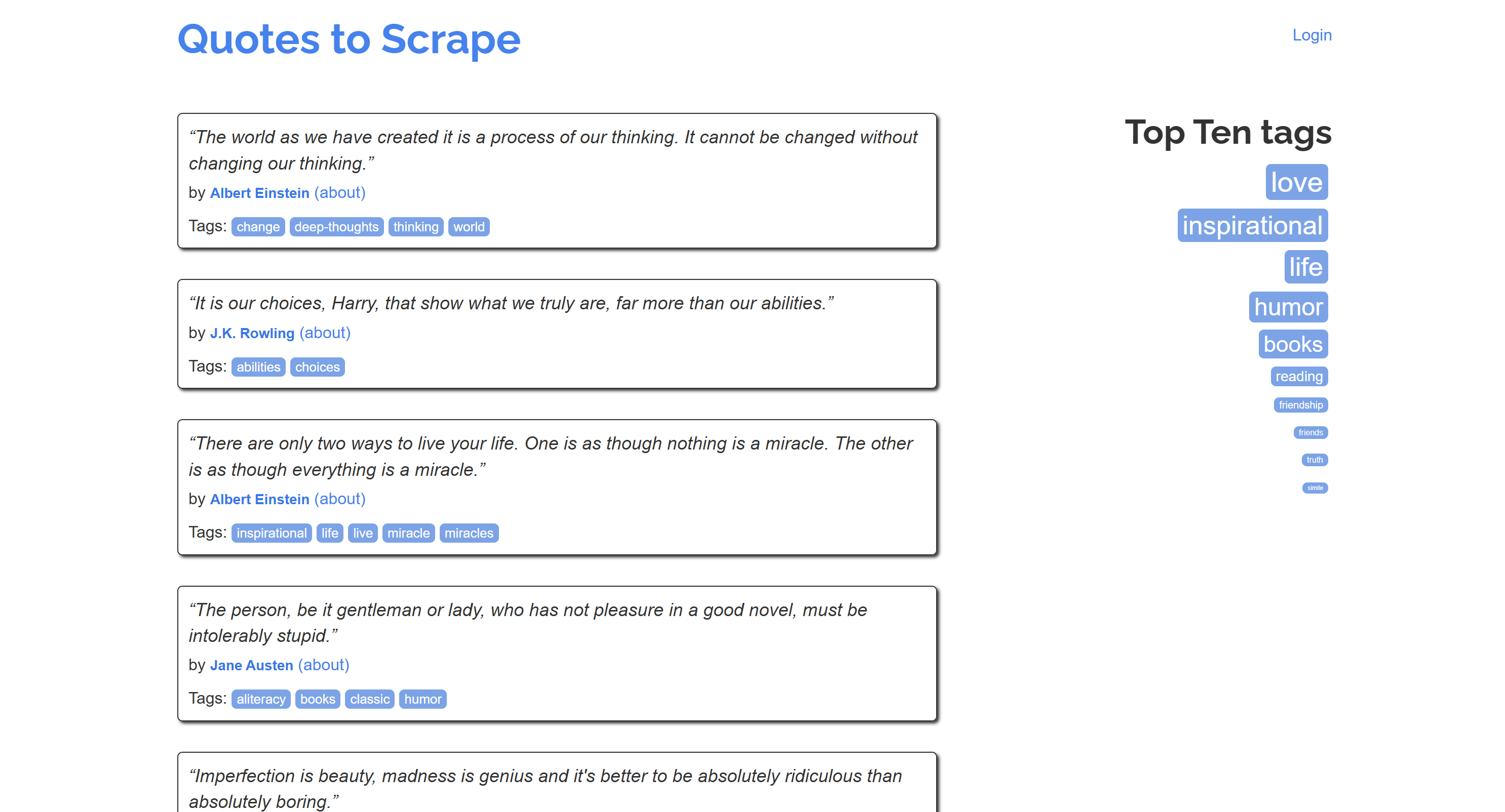 Suppose you want to scrape the classic “Quotes to Scrape” page: