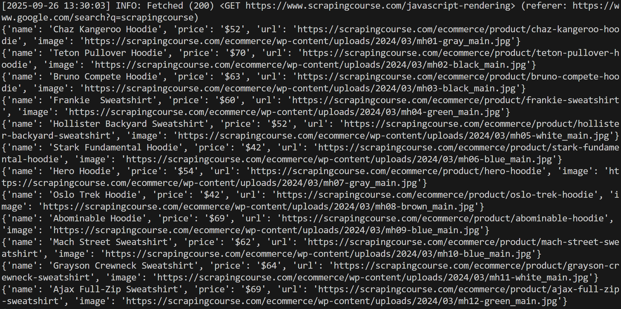 Notice how the script was able to scrape all product data. Well done!