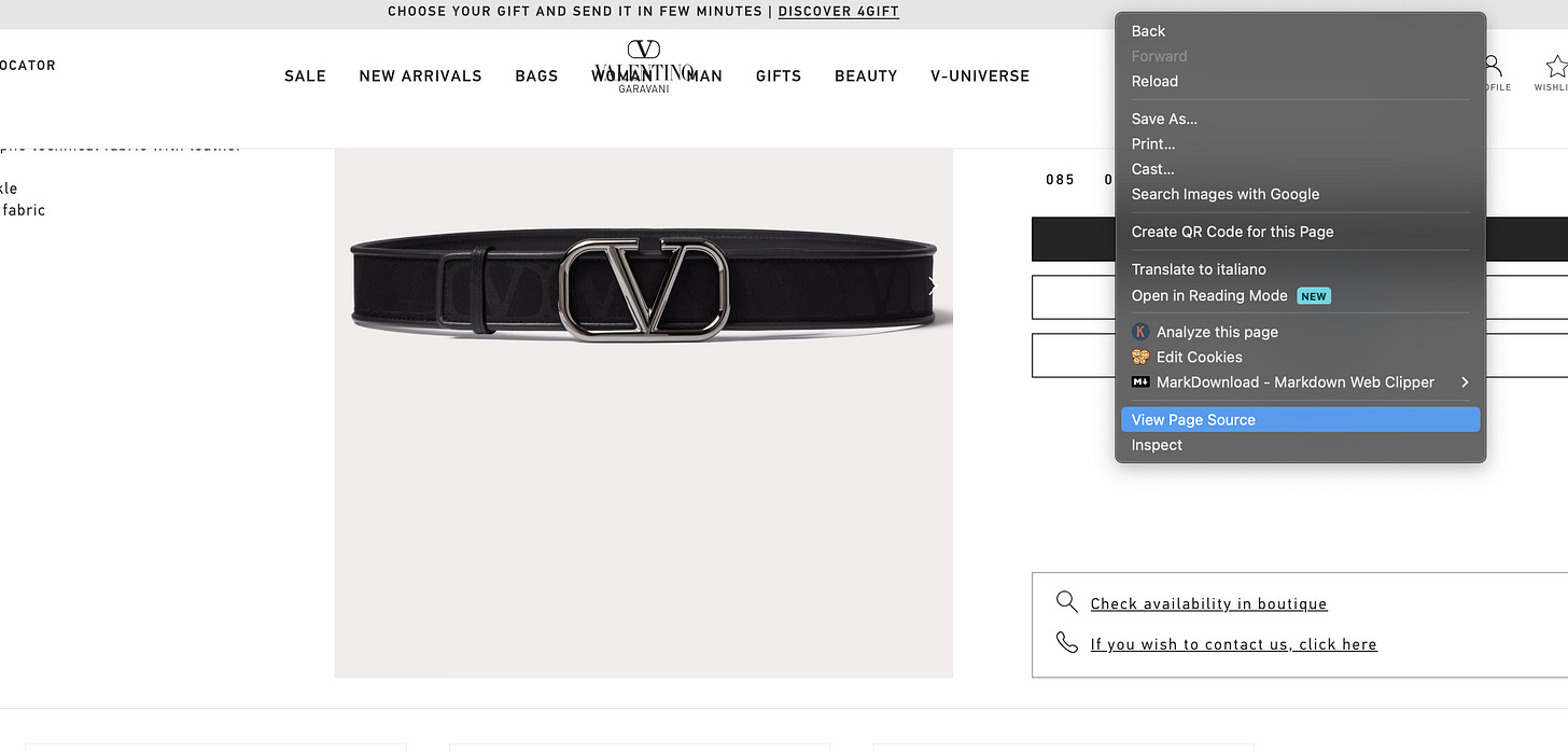 We needed to scrape the e-commerce website Valentino.com, so after checking with Wappalyzer there were no anti-bot and the data was publicly accessible from the web, we decided to proceed with creating a Scrapy scraper.