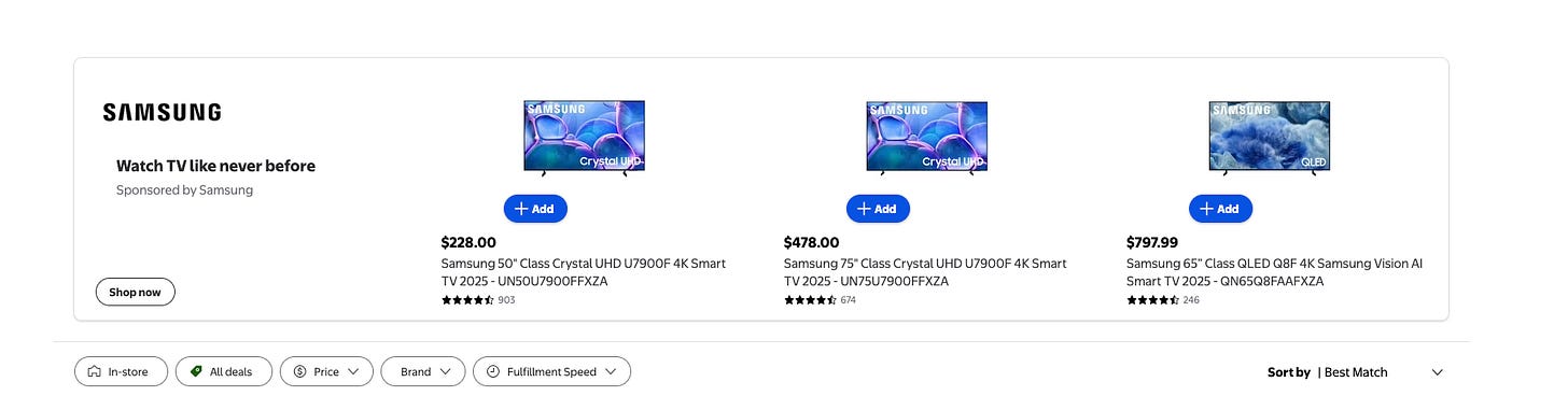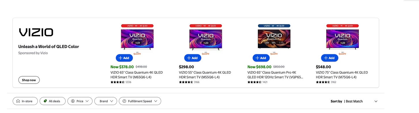 I’ve asked ChatGPT to show me the promoted TVs on Walmart, as they appear in this image