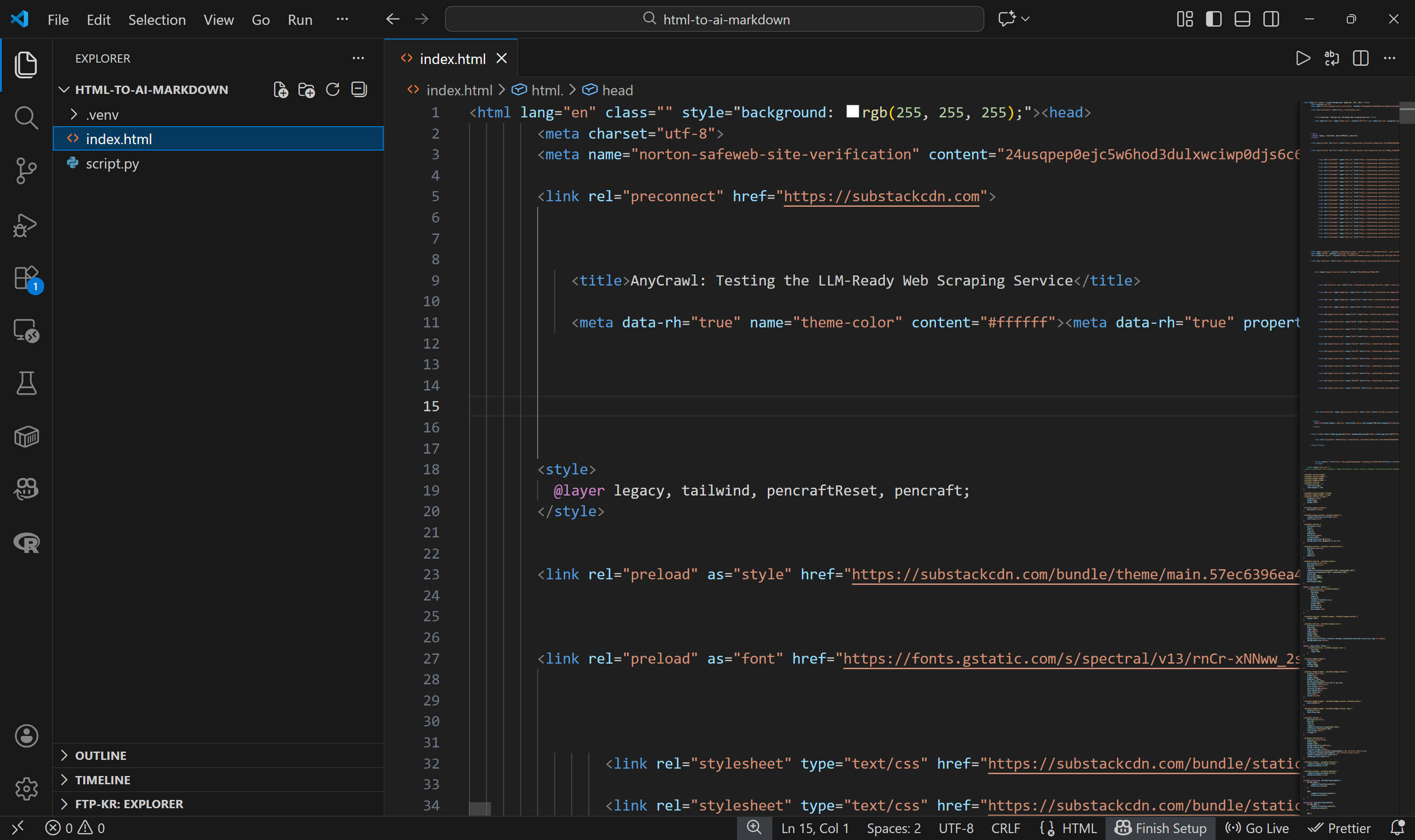 Here’s the simple script for converting HTML files to LLM-ready Markdown outputs: