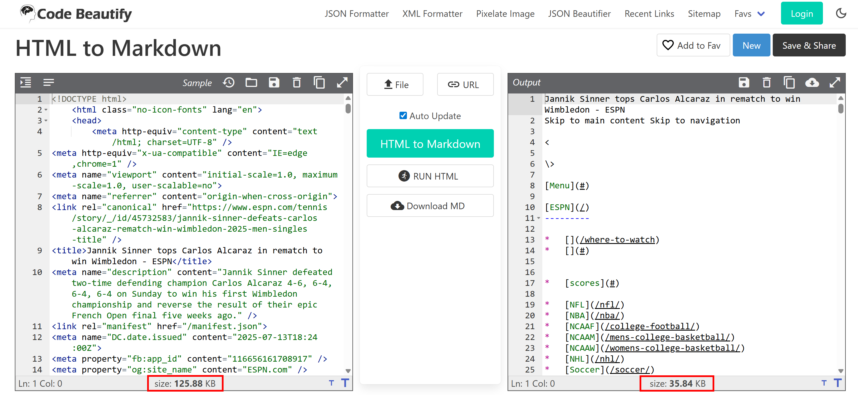 Still not convinced? Take a look at an HTML-to-Markdown conversion of a sports news page from ESPN: