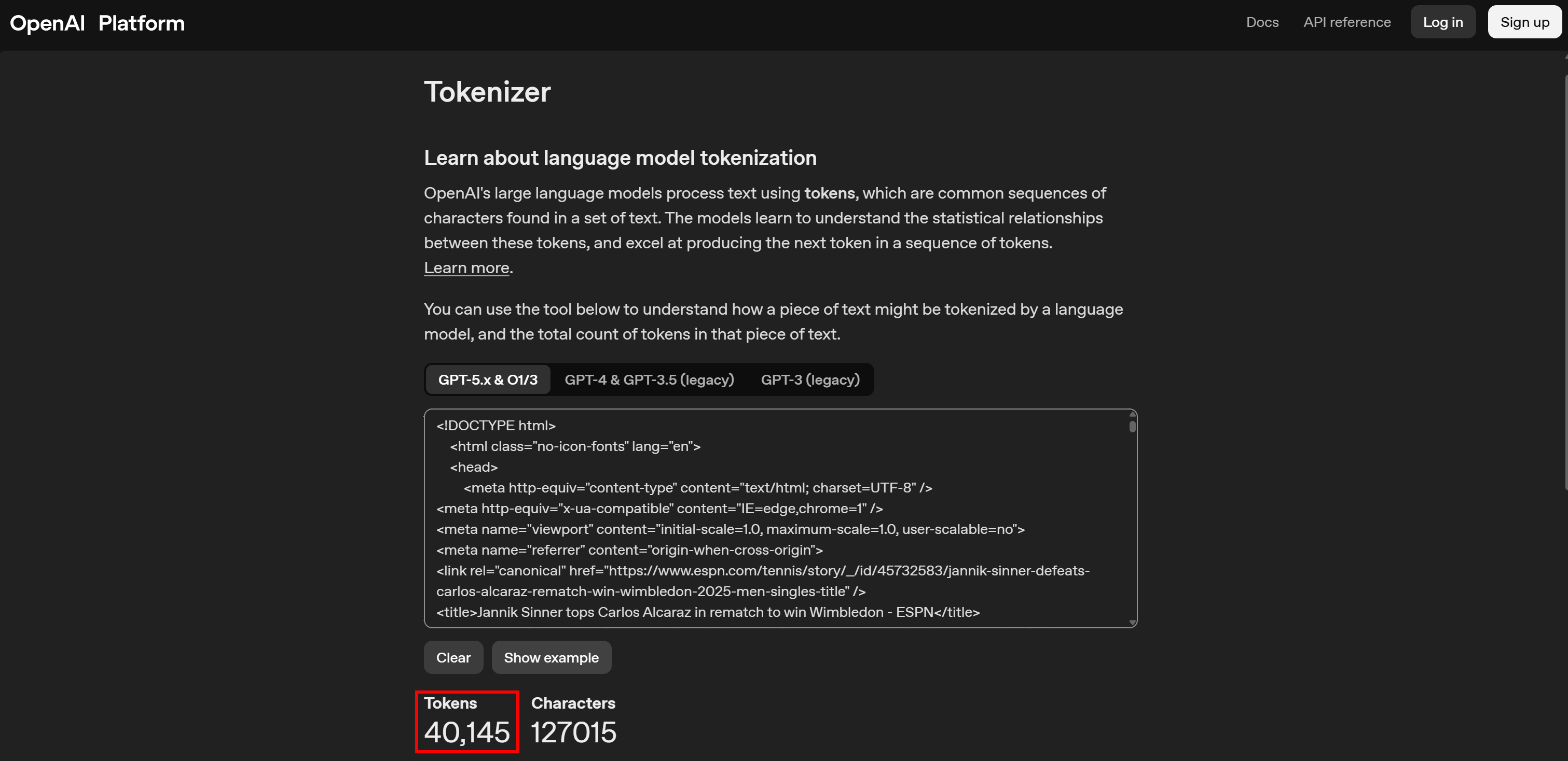 If we look at token usage, the difference can appear even more striking. The original HTML page translates to 40,125 tokens: